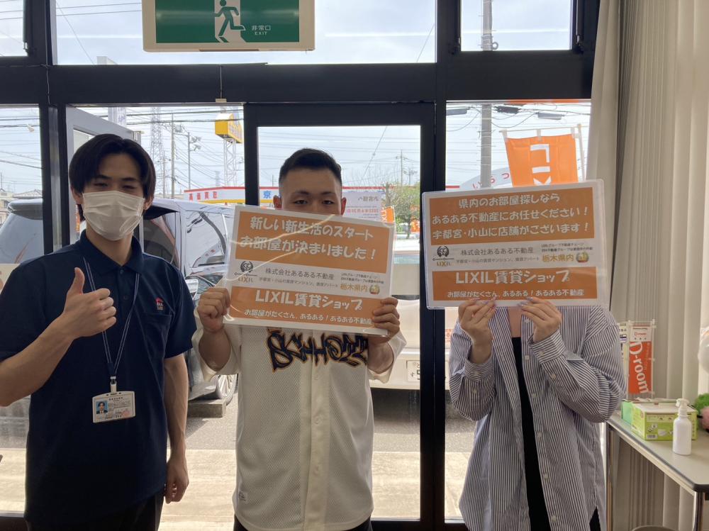 この度は数ある不動産会社の中から、あるある不動産小山店をご利用いただきまして誠にありがとうございます! お客様のお部屋探しも無事素敵なお部屋が見つかりましてとても安心しております! 鍵のお渡しまで引き続きサポートさせて頂きますのでよろしくお願い致します。 お困りごとがございましたらお気軽にご相談ください! 改めまして、今回は弊社をご利用頂きまして誠にありがとうございました。 新生活是非おたのしみください!!