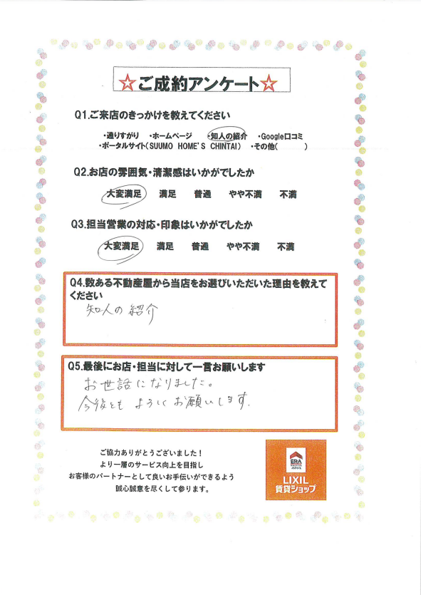 この度はあるある不動産をご利用いただき、誠にありがとうございました。