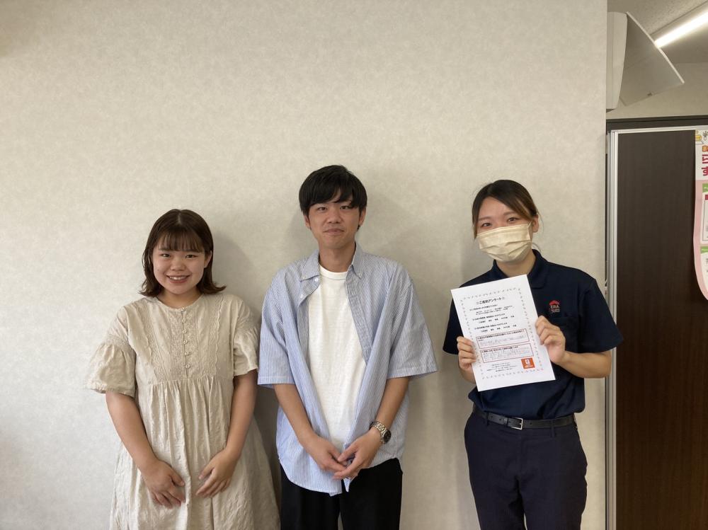 この度は数ある不動産会社から弊社をお選びいただき、誠にありがとうございました。お部屋探しは人生で限られた回数になるかと思うので、妥協せず、いちばんご条件の合ったお部屋を選んでいただきたく思っておりました。丁度お探しのタイミングでピッタリの良いお部屋が空いてくるところでしたので、お二人が引き寄せた運かと思います(^^)/またお手伝いできる機会があれば、いつでもお声がけください♪