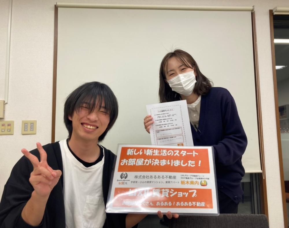 この度はあるある不動産東店をご利用いただき誠にありがとうございました! 遠くからご来店いただきありがとうございました! 慣れない土地で、ご不安もあるかと思いますが、素敵な物件が見つかってよかったです(^^♪ 宇都宮での新生活、楽しんでいただけたら嬉しいです。 引き渡しまでまだ期間がありますが、引き続きよろしくお願いいたします。