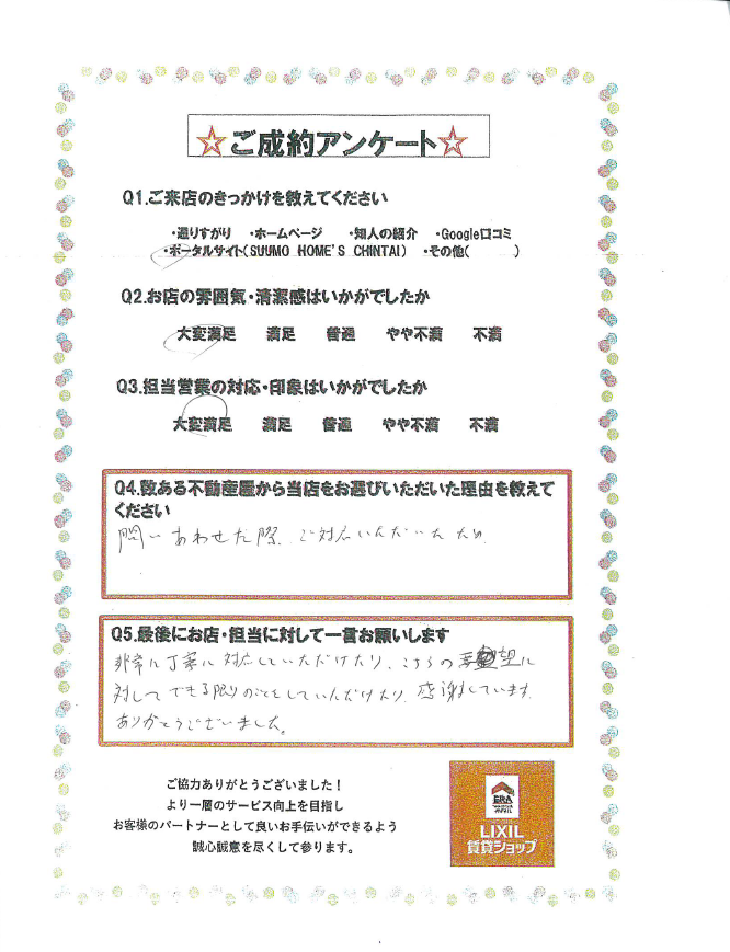 この度はあるある不動産東店をご利用いただきありがとうございます。