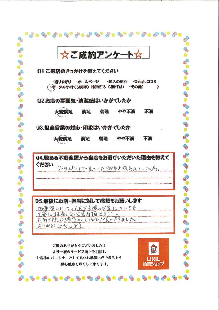 おかげ様で満足のいく物件が見つかりました。
