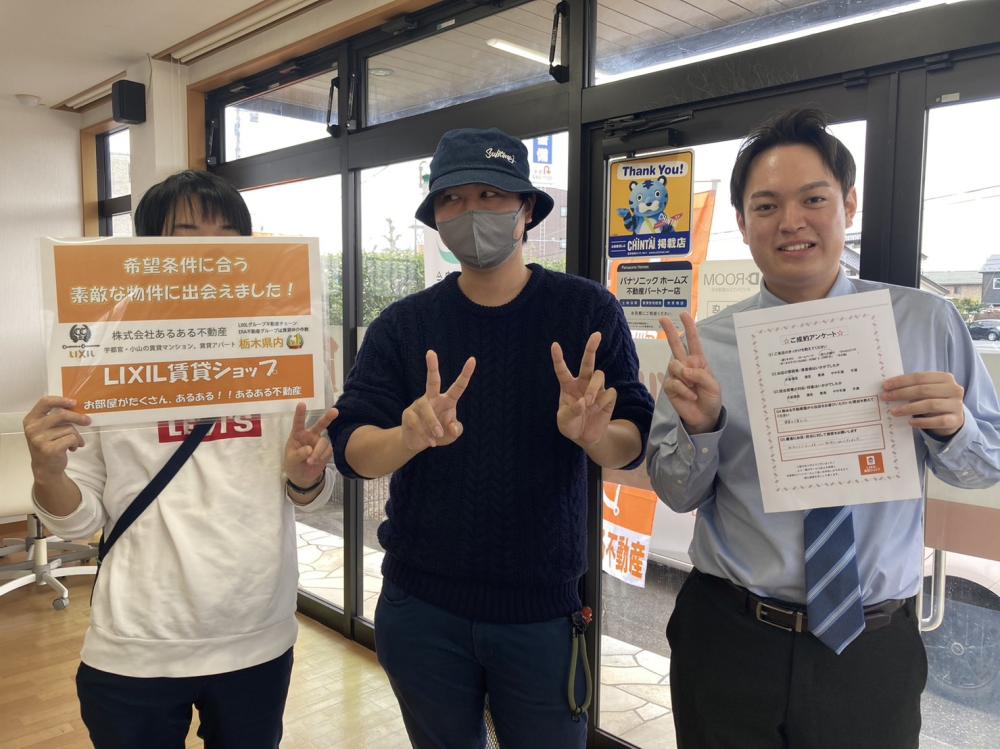この度はあるある不動産本店をご利用いただきありがとうございました(*^^*) 初めての賃貸物件探しということでこのような貴重な機会に立ち会えたこととても嬉しく思っております(*^^*) また、ご希望通りの物件の条件、初期費用をご案内できたことホッとしております! まだ、分からないことがあるとは思いますので不明点等あればご相談いただければと思います! この度は本当にありがとうございました!