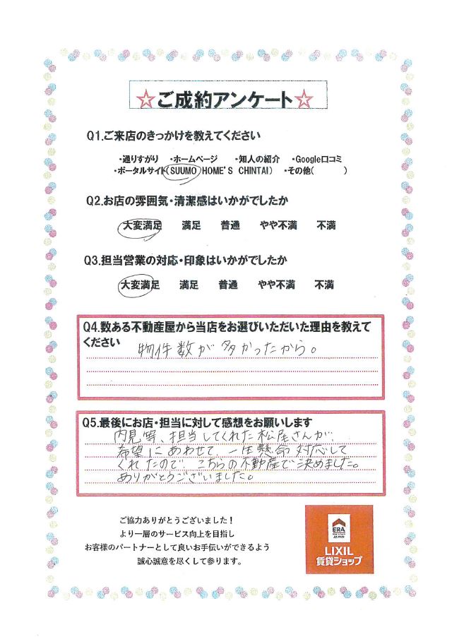 ご条件に合う物件でご契約いただけて私もとても嬉しいです(*^^)v