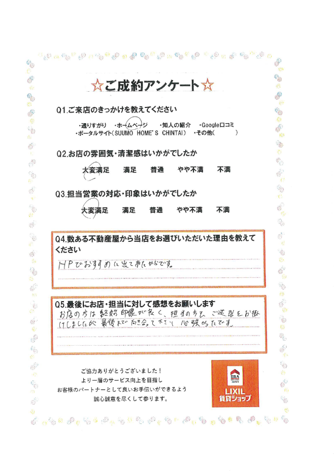 何件か見ていただいて無事にお部屋を決めていただけて良かったです。