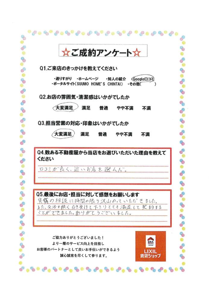 賃貸の相談に時間の限り沢山のっていただきました。