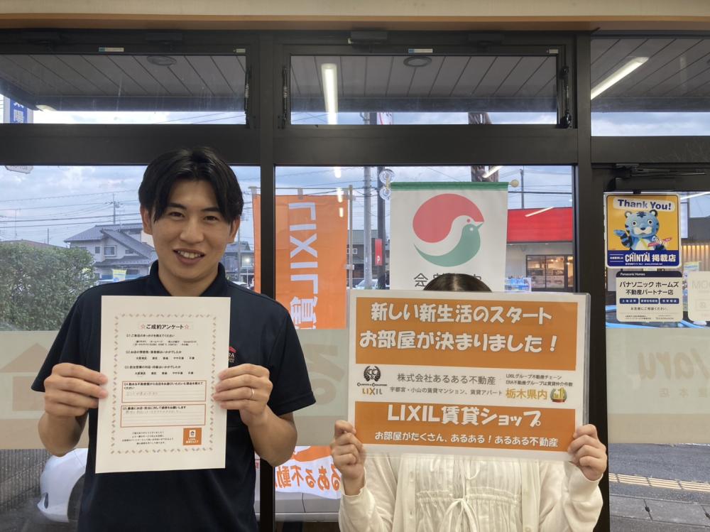 この度は弊社をご利用いただき誠にありがとうございました。 お急ぎでのお引越しとなりましたが、契約関係迅速にご対応いただきありがとうございました! ご契約いただいたお部屋もリフォームがしっかり入り、設備も整っているので、 長く住んでいただけると嬉しいです。 ご入居中もお困りことございましたらご相談ください!