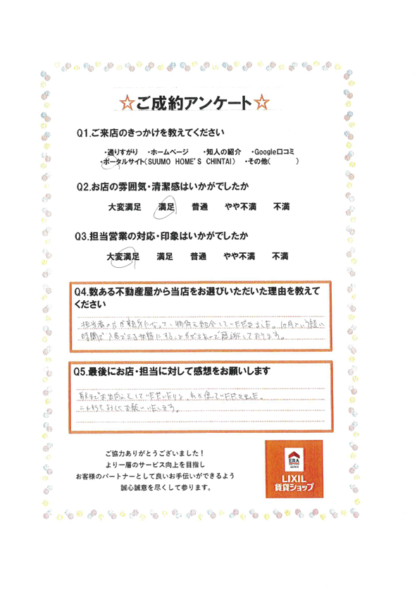 遠方からの慣れない土地でご不安な中だと思いますが、無事お部屋のご案内ができましたこと大変嬉しく思います。