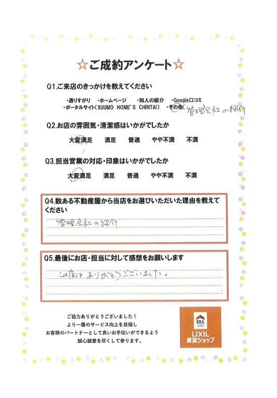 この度はありがとうございました。(小山市 U様)