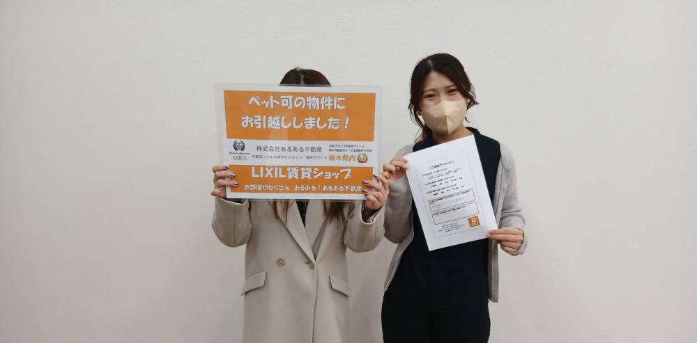 この度は数ある不動産の中からあるある不動産小山店をお選びいただきありがとうございました! 今回も担当させていただくことができとても嬉しかったです(*´ω`*) 寒い中でのお引越し作業になりますのでお身体には十分お気を付けください! ご入居後でも分からないことなどございましたらお気軽にご連絡ください(^^)/ 今後ともよろしくお願いいたします。