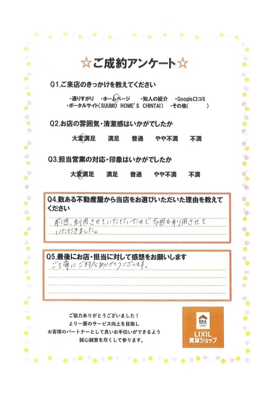 ご丁寧にご対応ありがとうございます。(小山市 N様)