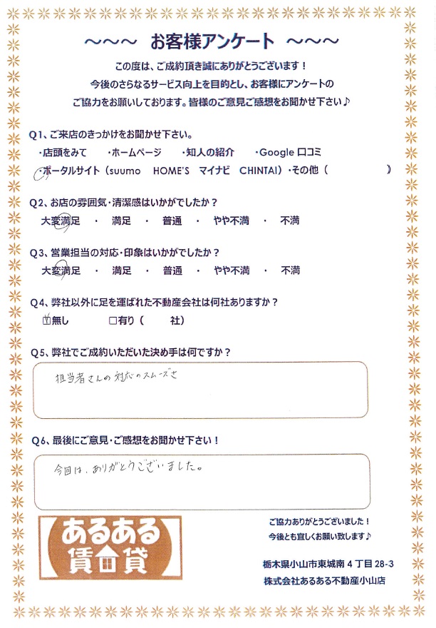 担当さんの対応のスムーズさ(茨城県在住 M様)